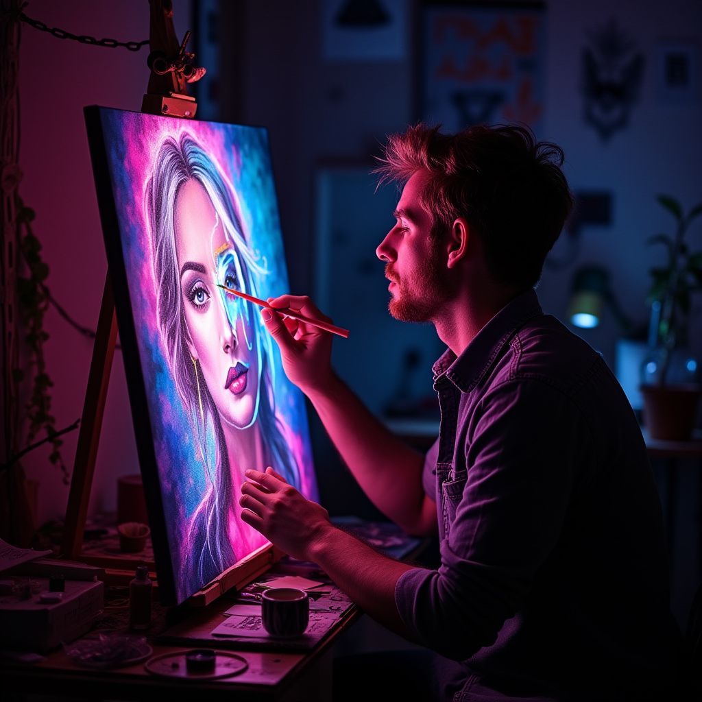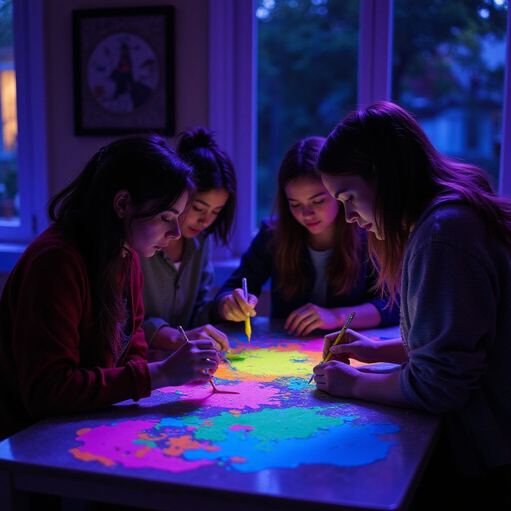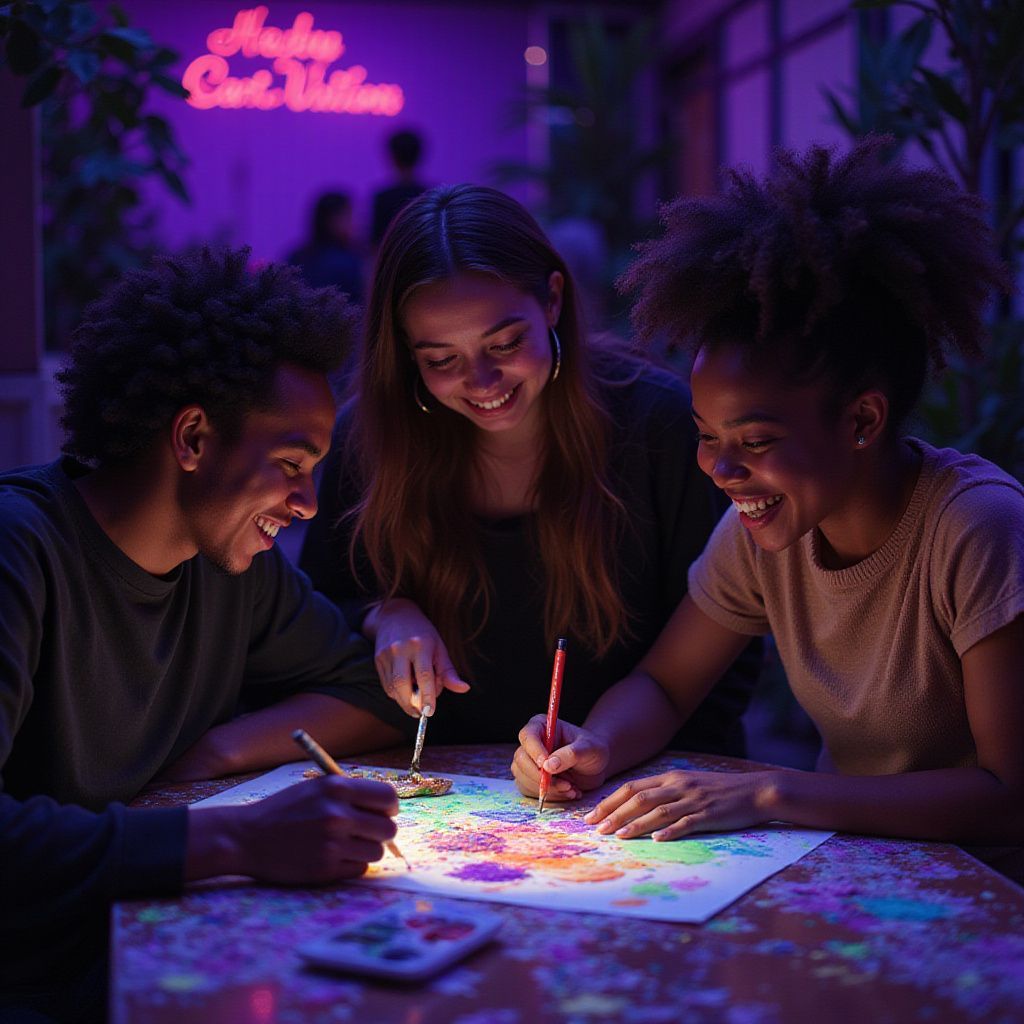 Peignez sous lumière UV dans une ambiance tamisée qui stimule la créativité et offre un cadre inédit pour exprimer votre talent.