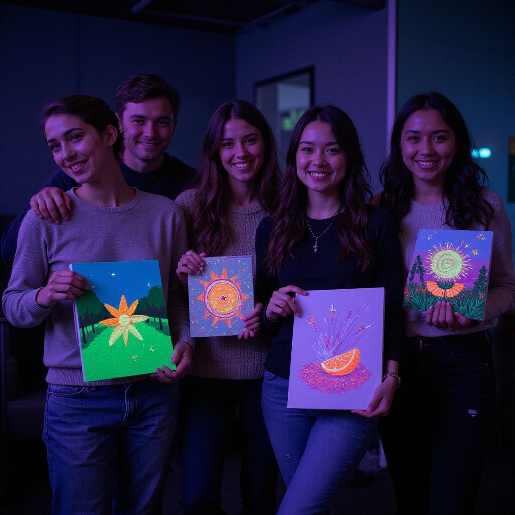 Un moment de détente et de créativité intense. J'ai adoré peindre dans le noir tout en dégustant un verre, c'était une expérience hors du commun.